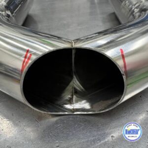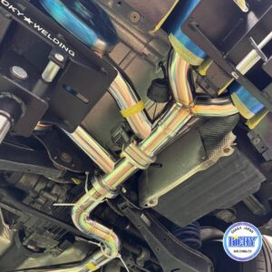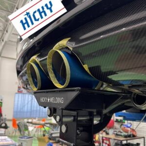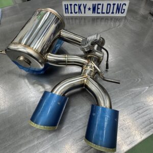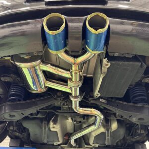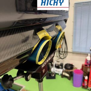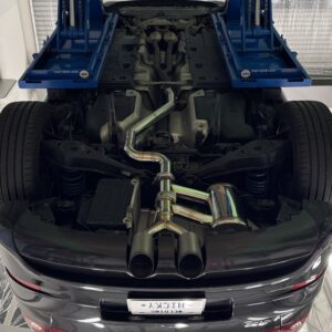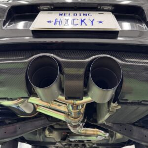 マフラーエンドはHICKYメイドのマットチタン102φで