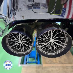 排気の乱流を整え、独自の音響特性と整流効果を実現。